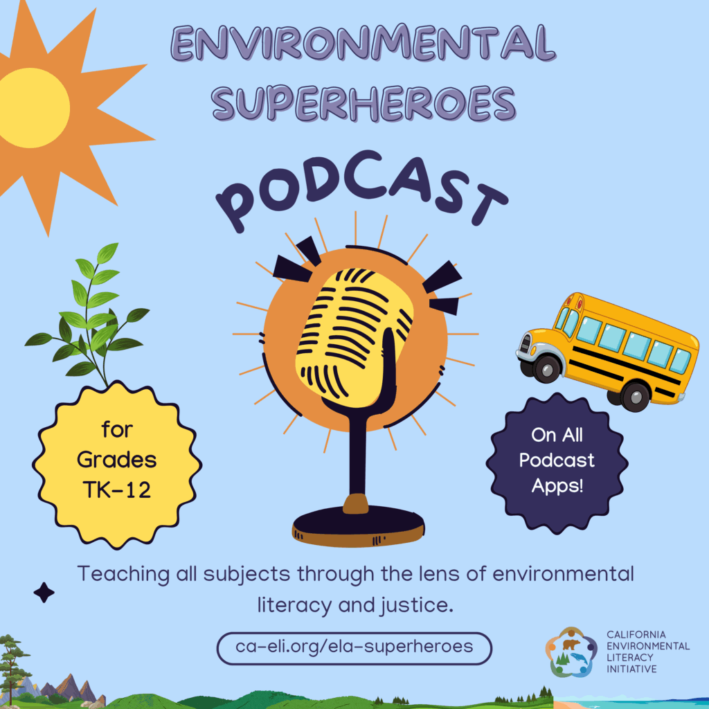 This podcast collection highlights stories of California TK-12 educators who teach reading, writing, listening, and speaking through the lens of environmental literacy and justice, giving a glimpse into what this type of work might look like in TK-12 classrooms.